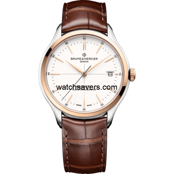 Baume & Mercier-10519 Clifton Baumatic Stainless Steel / Red Gold / White / Strap / COSC