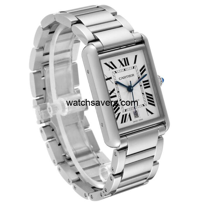 The Cartier Tank Must WSTA0053 has a rectangular case of 41*31 mm in Stainless Steel. The dial is Silver. This watch is powered by a self-winding movement with central seconds and date (caliber 1847 MC).