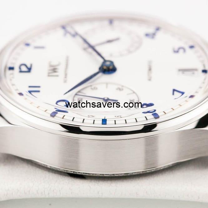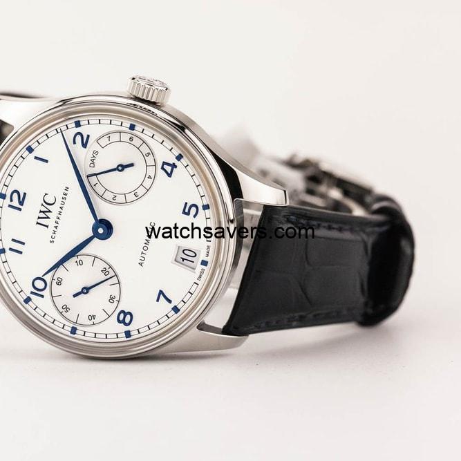 The IWC Portugieser is a luxury watch collection created by IWC Schaffhausen, the Swiss watch company founded in 1868. The Portugieser collection is known for its classical design inspired by marine chronometers, it's a blend of precision engineering and traditional watchmaking. These models feature different complications, such as perpetual calendar, tourbillon and chronograph, and are available in a range of materials including steel, gold and rose gold. The Portugieser watches are powered by in-house mechanical movements and are water-resistant to varying degrees. The collection has a rich history, it was first introduced in 1939, and is named after the Portuguese sailors who commissioned IWC to make them precision pocket watches in the 1930s.