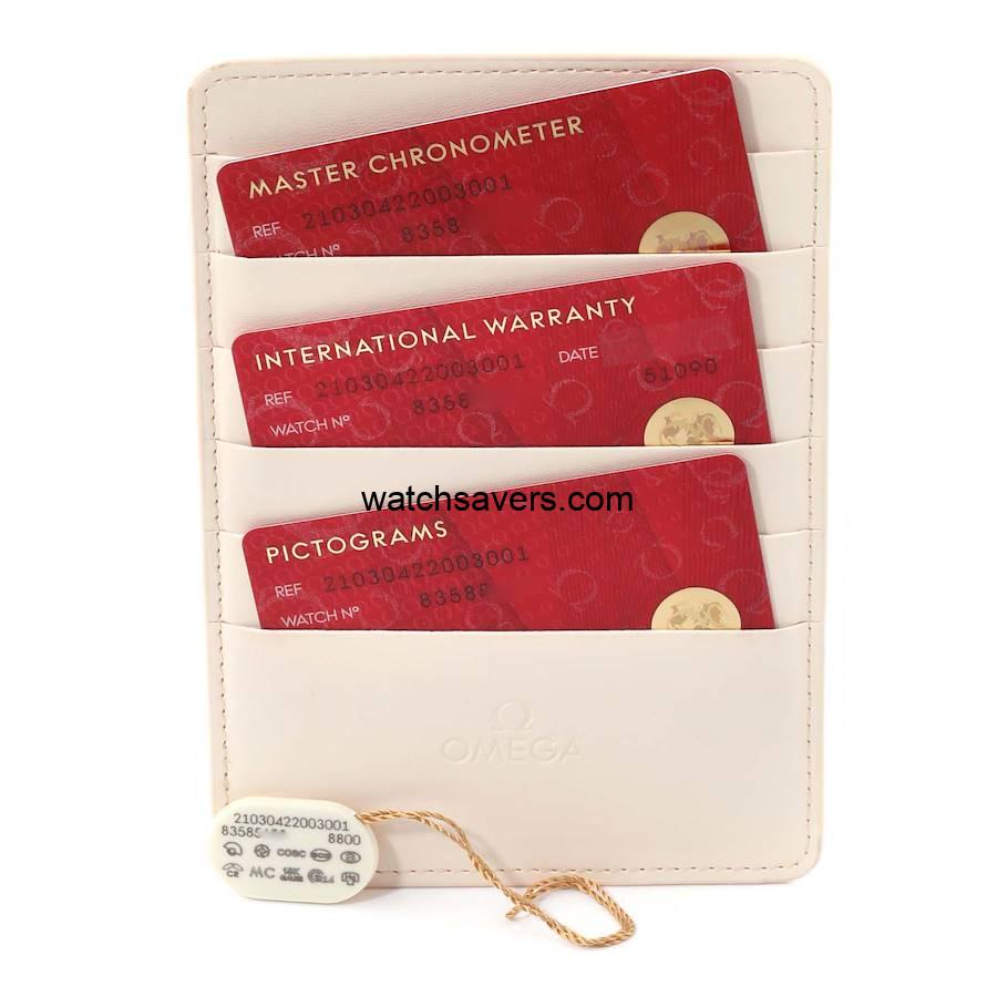 The fourth generation of the Omega Seamaster 300M was introduced at BaselWorld 2018, marking the return of the wave-dial and the introduction of the Co-Axial Master Chronometer caliber 8800. It is available in a number of variations; reference 210.30.42.20.03.001 has a blue dial and matching ceramic bezel insert; it is fitted with a stainless steel bracelet.