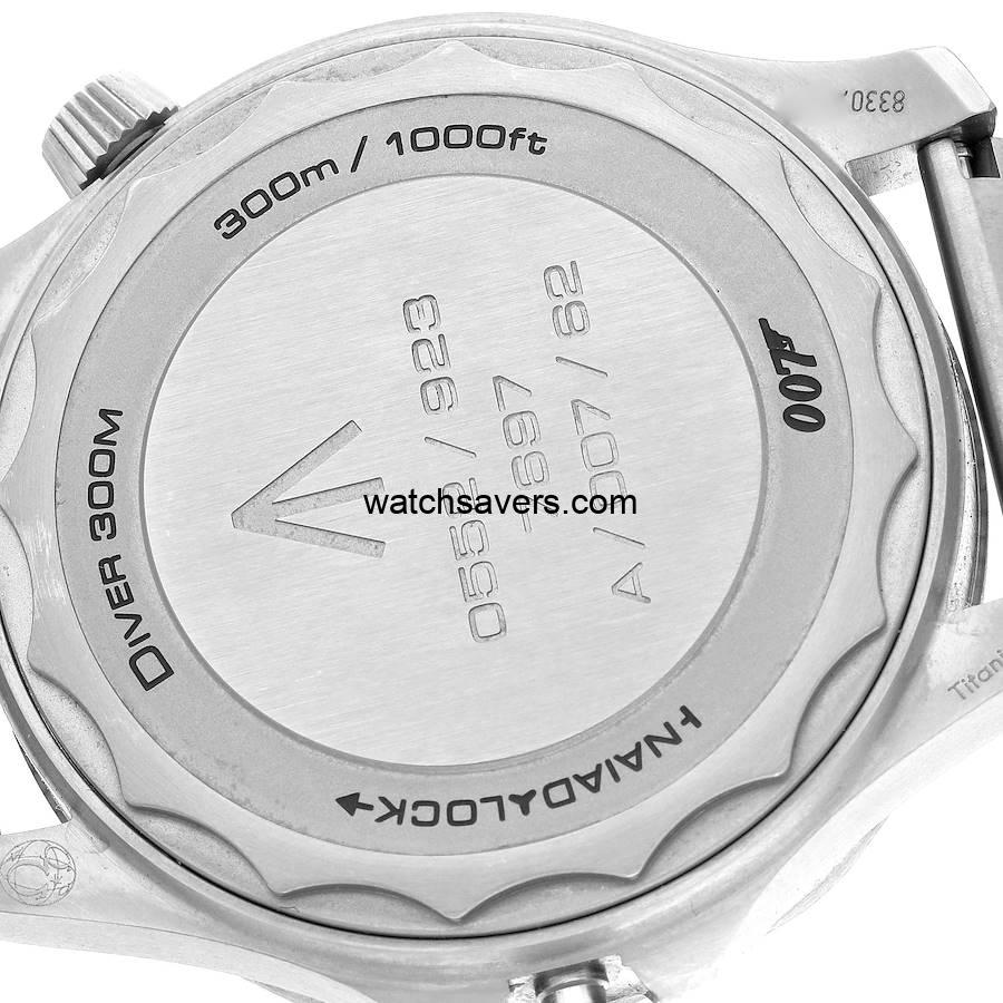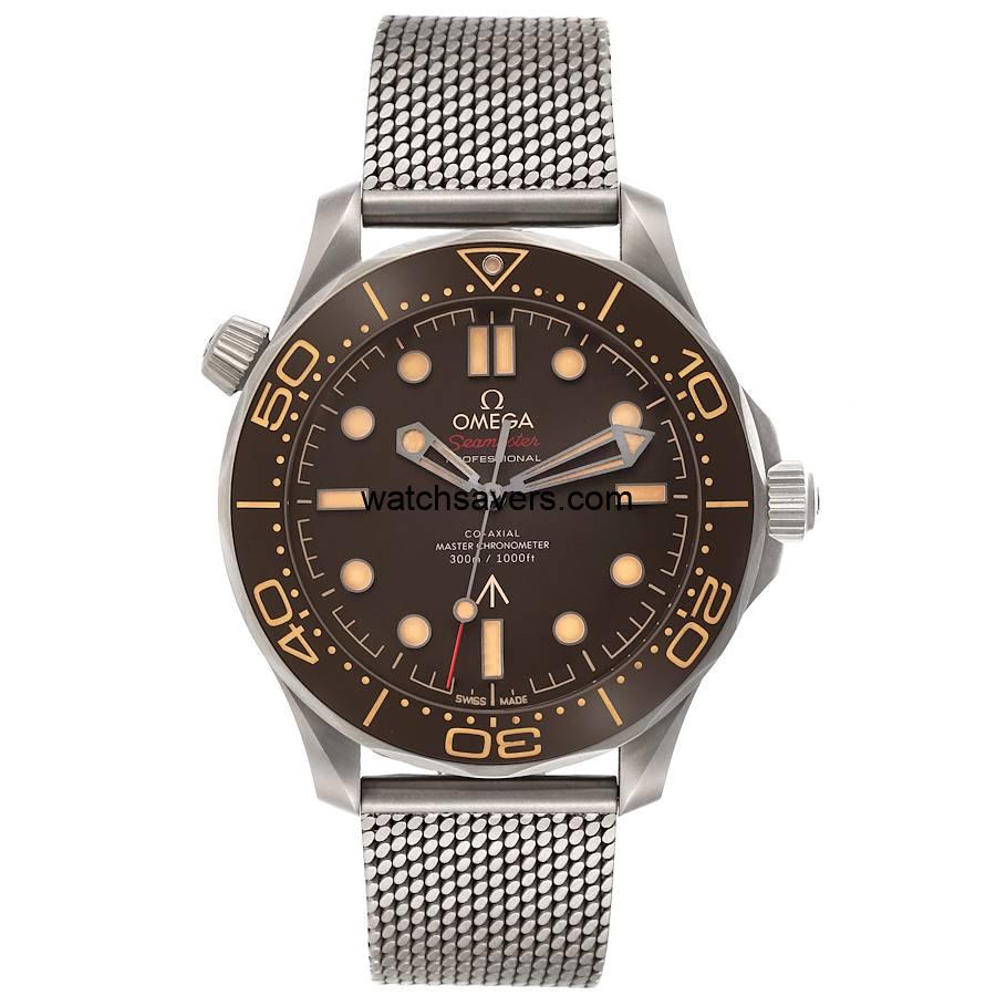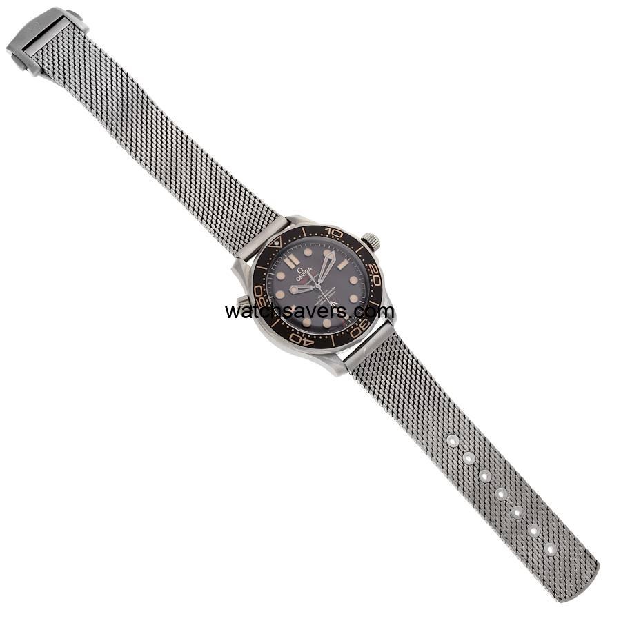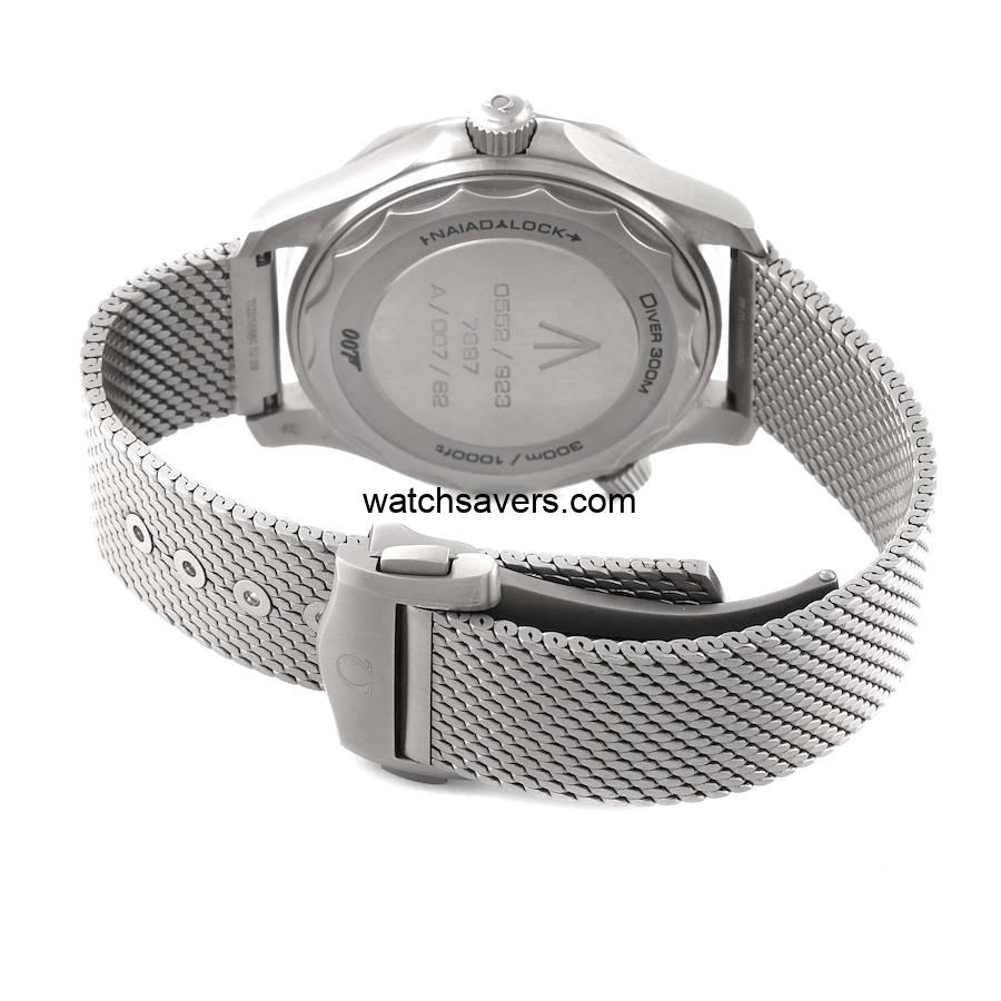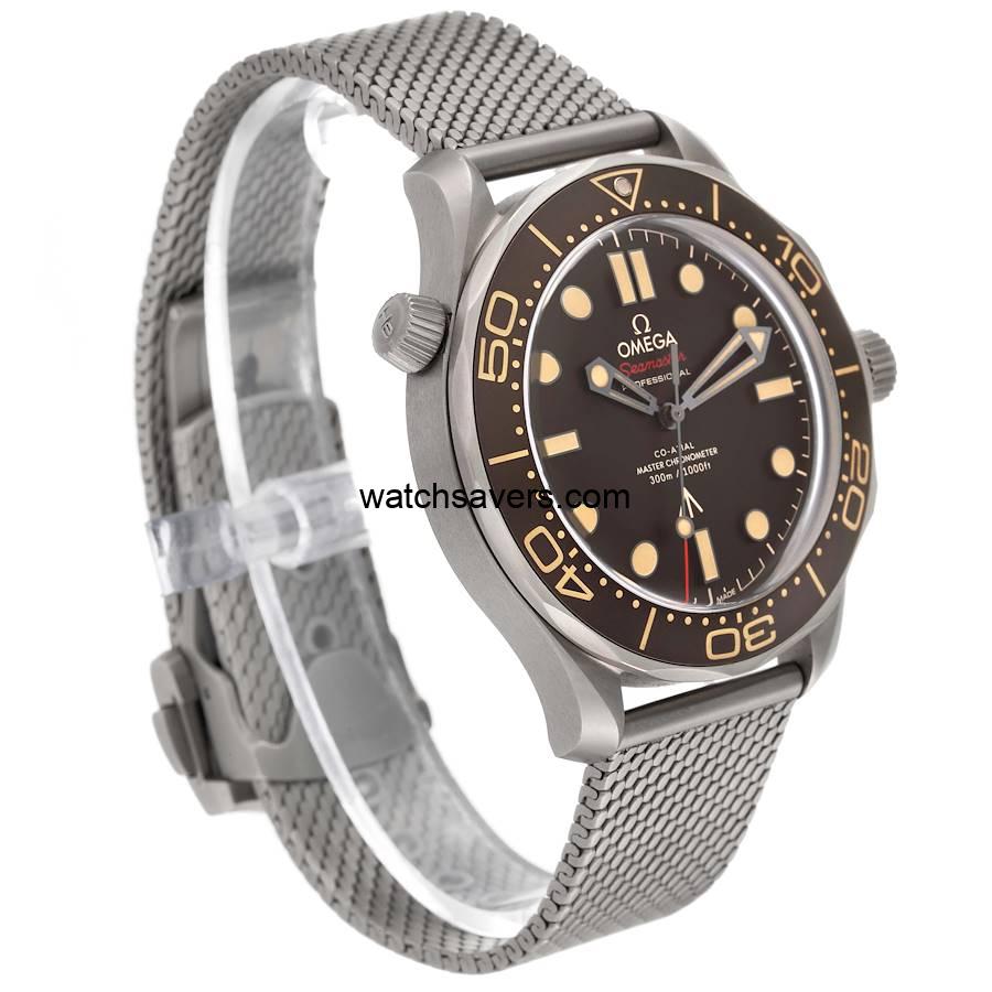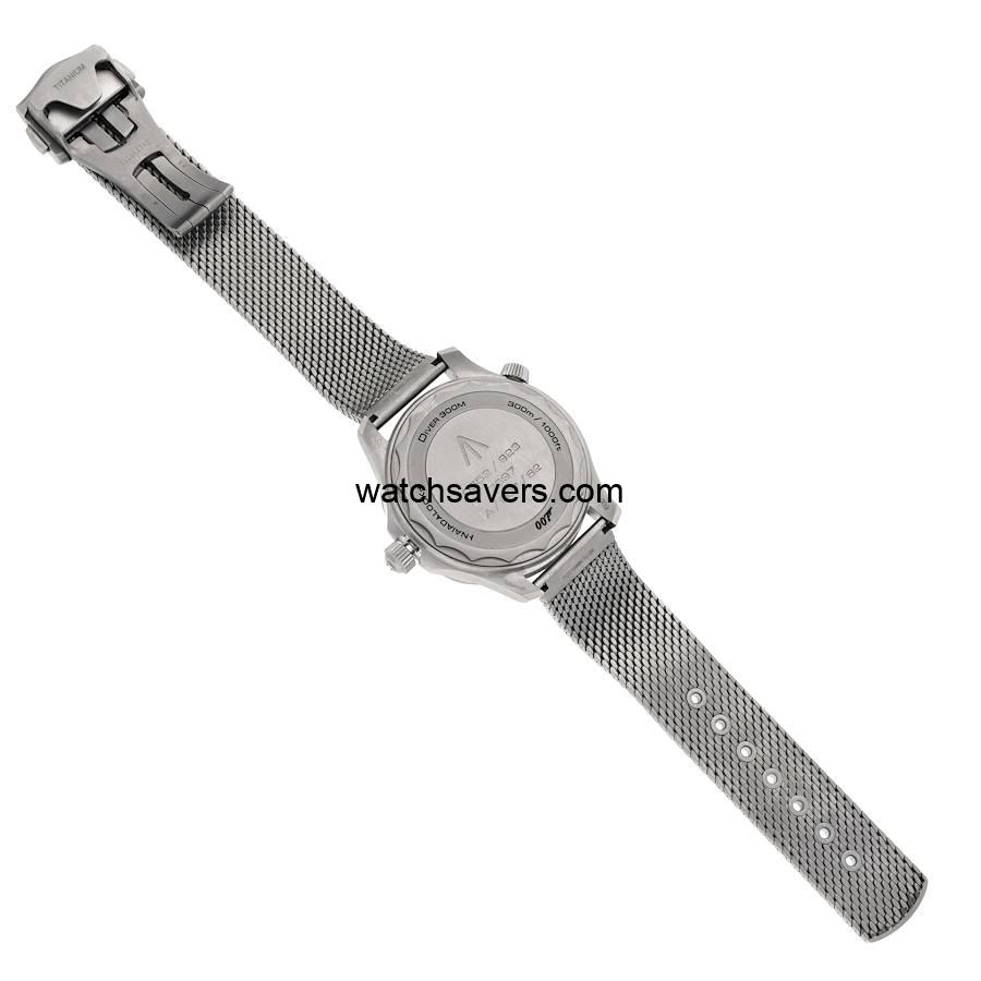 The Omega Seamaster 300M reference 210.90.42.20.01.001 ‘James Bond’ features a titanium case and matching titanium mesh-style bracelet, as worn by Daniel Craig in the 2020 James Bond No Time to Die movie. It was introduced in December of 2019, some five months before the release of the movie.