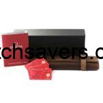 The Omega Seamaster 300M James Bond No Time to Die 210.90.42.20.01.001 features a full titanium case crowned by an aluminum bezel insert. It measures 42mm across, with water resistance set at 300 meters. Inside ticks the self-winding 8806 rather than the 8800: this watch does not feature a date window. The tropical brown dial proudly sports the ‘Broad Arrow’ logo at 6:00. a nod to military watches of yesteryear.