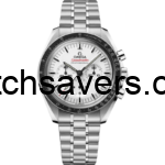 The Omega Speedmaster Moonwatch ref. 310.30.42.50.04.001 was introduced in 2024. This Moonwatch features a -lacquered- white dial rather than matte black. This watch is powered by caliber 3861. The case is stainless steel with an aluminum tachymeter bezel insert.