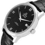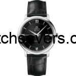The DeVille Prestige Co-Axial reference 424.13.40.20.01.001 has a stainless steel case of 39.5mm and a black dial. It is powered by the self-winding caliber 2500.