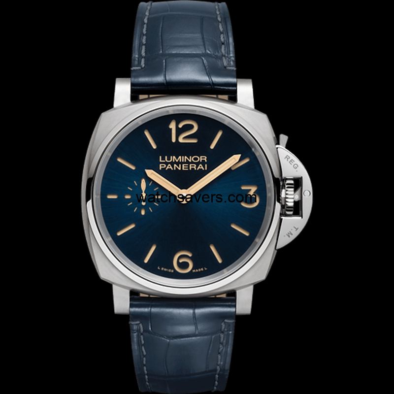 The Panerai Luminor Due 3 Days PAM00729 was introduced in 2017. It features a titanium case of 45mm, paired with a blue dial with sunburst finish.