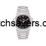 The Nautilus 3710/1A-001 has a stainless steel case and matching a black dial. It is powered by the self-winding caliber 330 SC IZR, with central seconds, date and power reserve.
