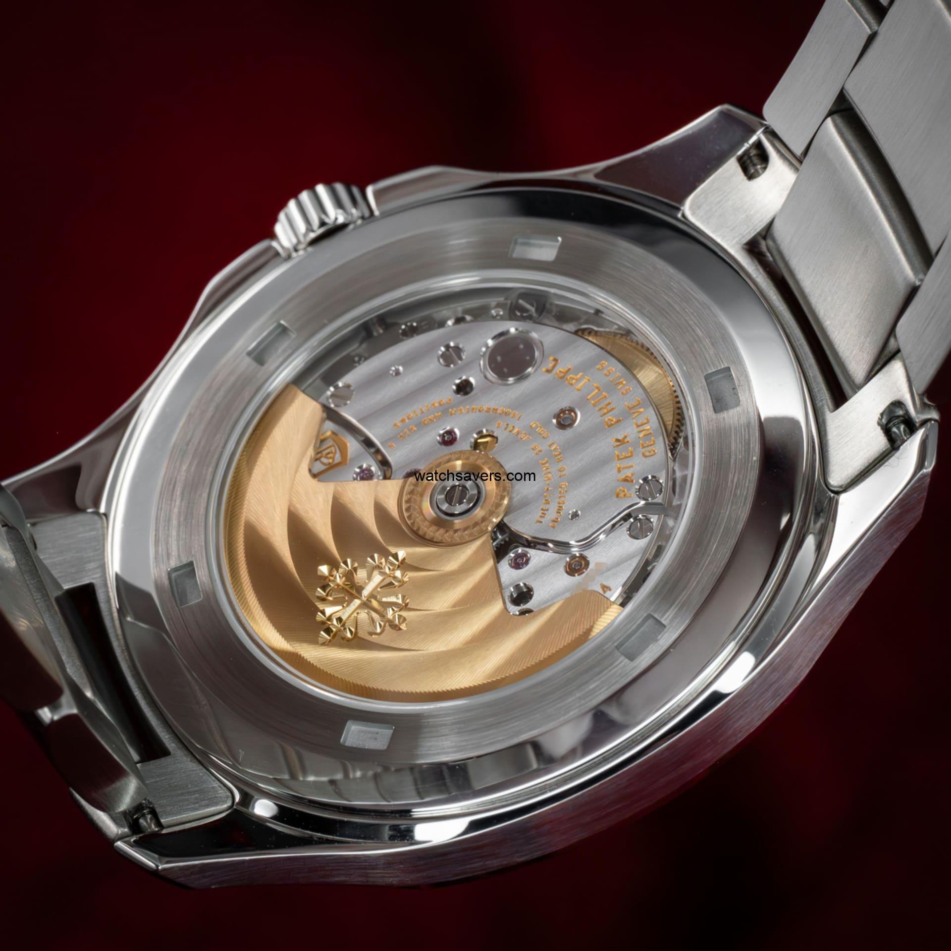 The Patek Philippe Nautilus 5167/1A-001 features a stainless steel case and matching bracelet. It is powered by the self-winding caliber 324 S C. Reference 5167A-001 is similar yet fitted with the ‘tropic’ style rubber strap.