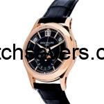 The Patek Philippe 5205 is an annual calendar wristwatch with 24-hour indicator and moonphase. The day, date and month are displayed through apertures in the upper half of the dial. Its design is reminiscent of the 5960 and other modern Patek Philippe watches. The 5205 is powered by caliber 324 S QA LU 24H/206. The white gold 5205G-001 and 5205G-010 were introduced in 2010, while the rose gold 5205R-001 and 5205R-010 were added to the collection in 2013. As reference 5205R-010, it features a rose gold case and a black dial.
