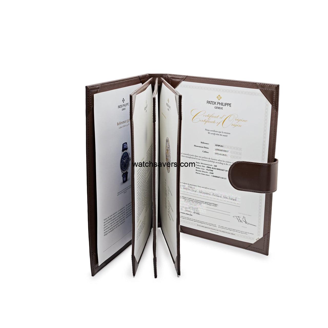 Ref. 5370P-011 has a Platinum case and a Blue dial. It was added to the collection in 2020.
