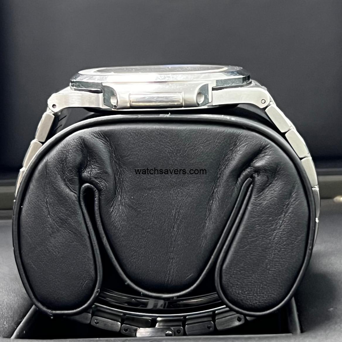 With the 5711, Gerald Genta’s original Seventies design has remained very much unchanged – at least to the eye. Reference 5711/1A-010 sports a stainless steel case with matching bracelet and a blue dial.