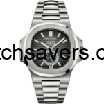The Nautilus 5726 is a more complicated member of Patek Philippe’s iconic sports watch. It features an annual calendar automatic movement with moonphase display and a case that’s slightly larger compared to the 5711. The present 5726/1A-001 has a stainless steel case and bracelet and a black dial.