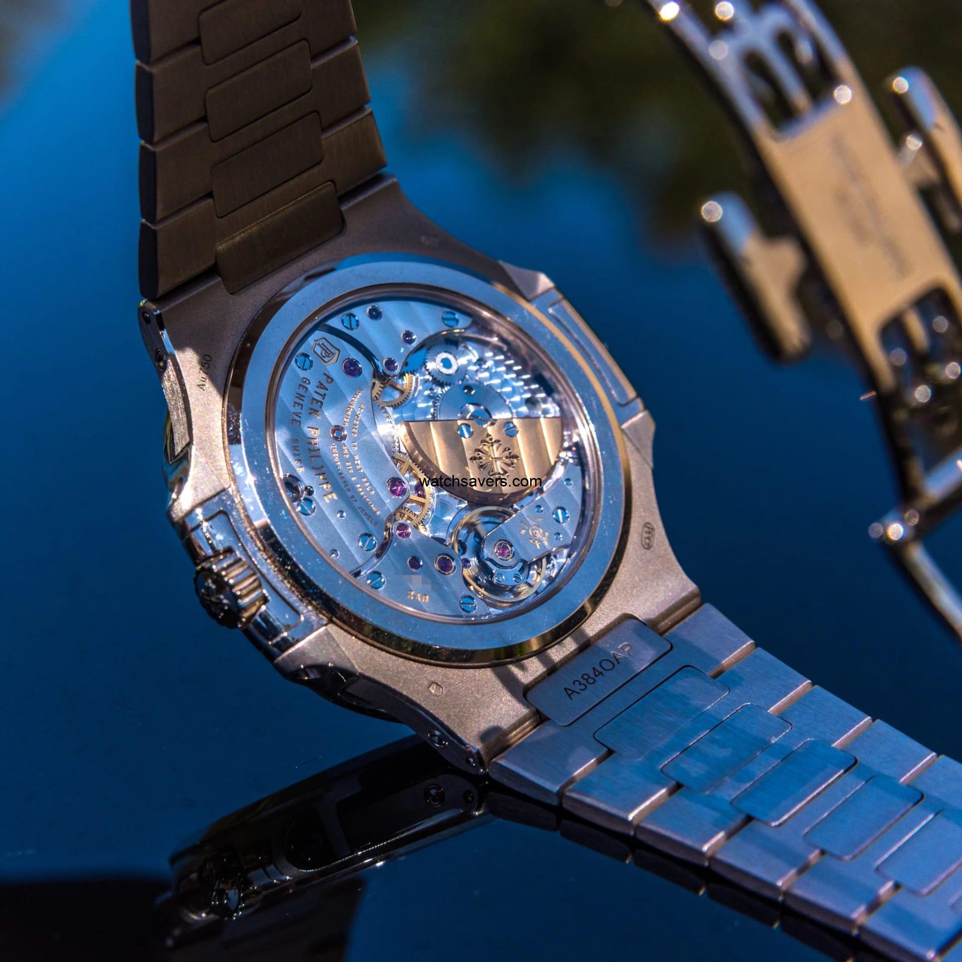The Patek Philippe Nautilus Perpetual Calendar 5740/1G-001 was introduced at BaselWorld 2018 as the first Nautilus with perpetual calendar. It features a white gold case of 400mm, which is paired with a blue sunburst dial.