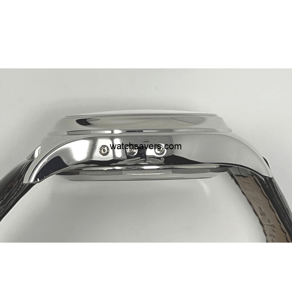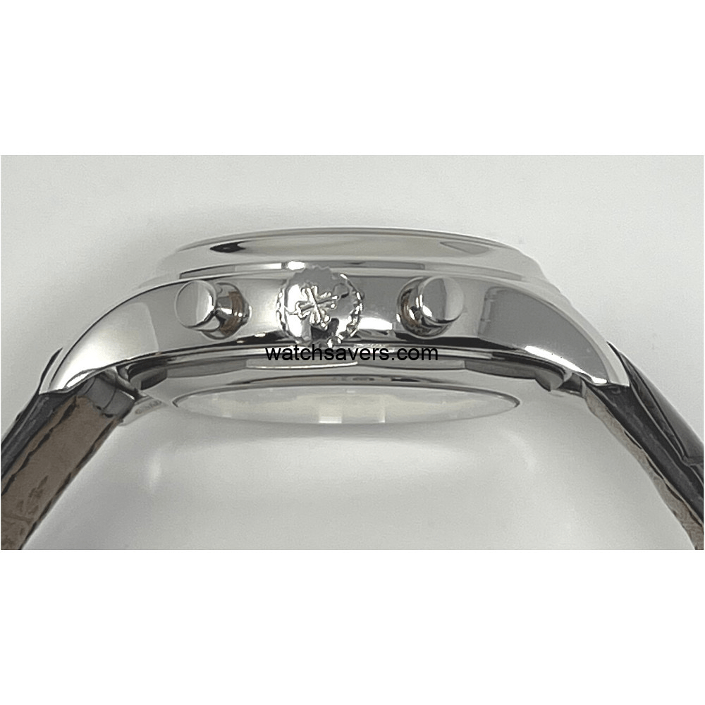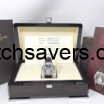 The 5960P-001 is the original 5960 as released in 2006. It’s platinum case is paired with a grey dial. It was Patek’s first in-house chronograph movement.