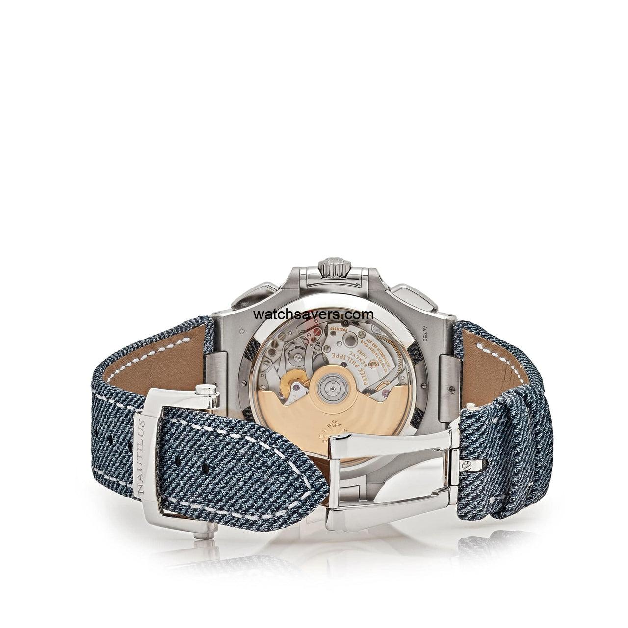 The Patek Philippe Nautilus 5980/60G-001 marks the return of the flyback chronograph Nautilus, this time dressed in White Gold with a Blue dial.