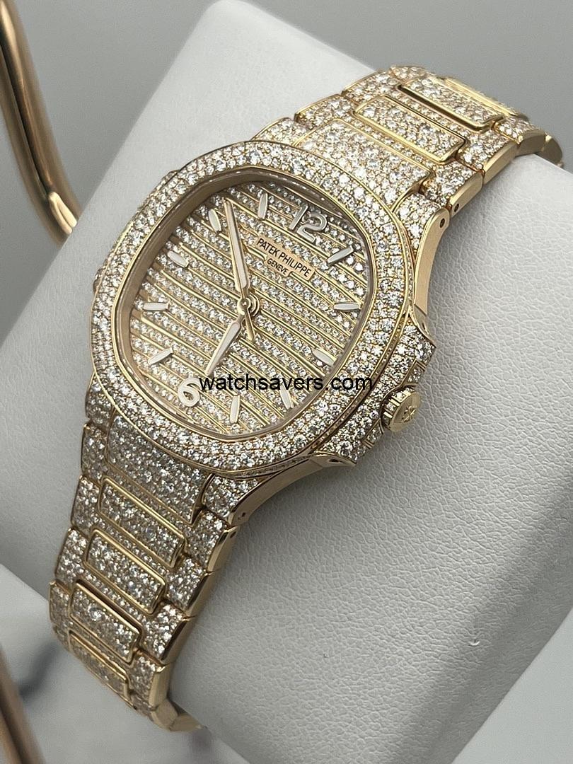Introduced in 2021, the Patek Philippe Nautilus reference 7118/1450R-001 finds its case, bracelet and dial set with a total of 2553 flawless Top Wesselton brilliant-cut diamonds.