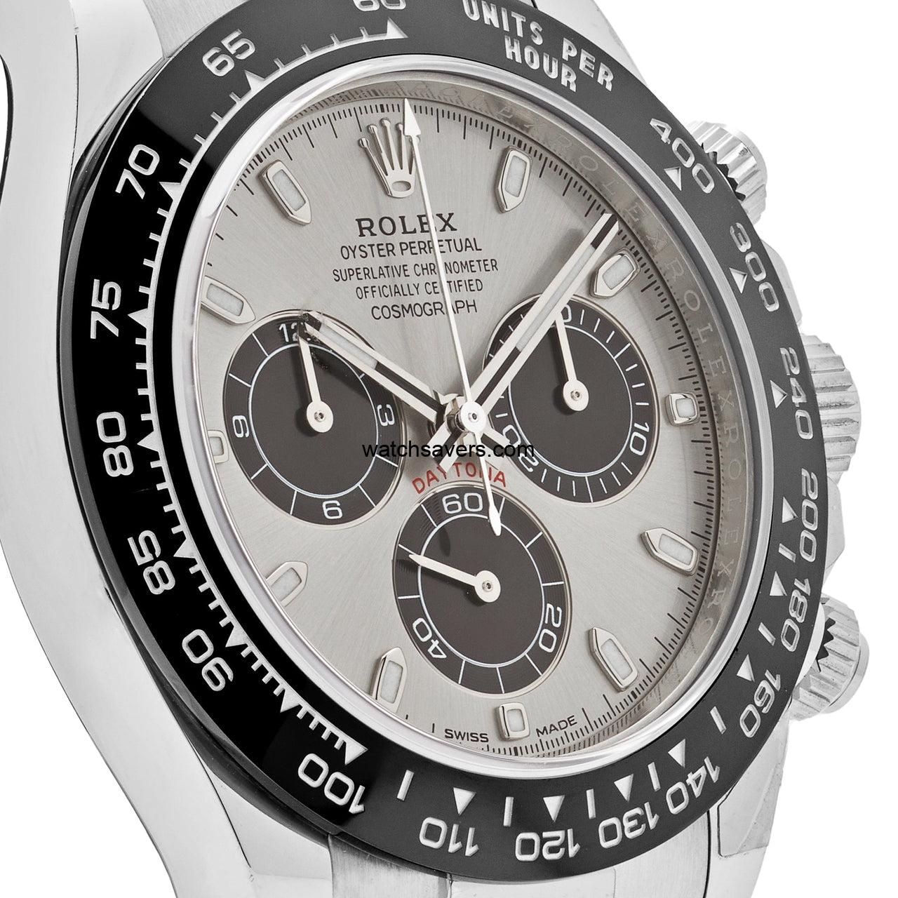 The Rolex Cosmograph Daytona 126519LN-0006 was introduced in 2023. This Daytona has a white gold case with ceramic bezel, which houses the updated caliber 4131. The dial is Silver.